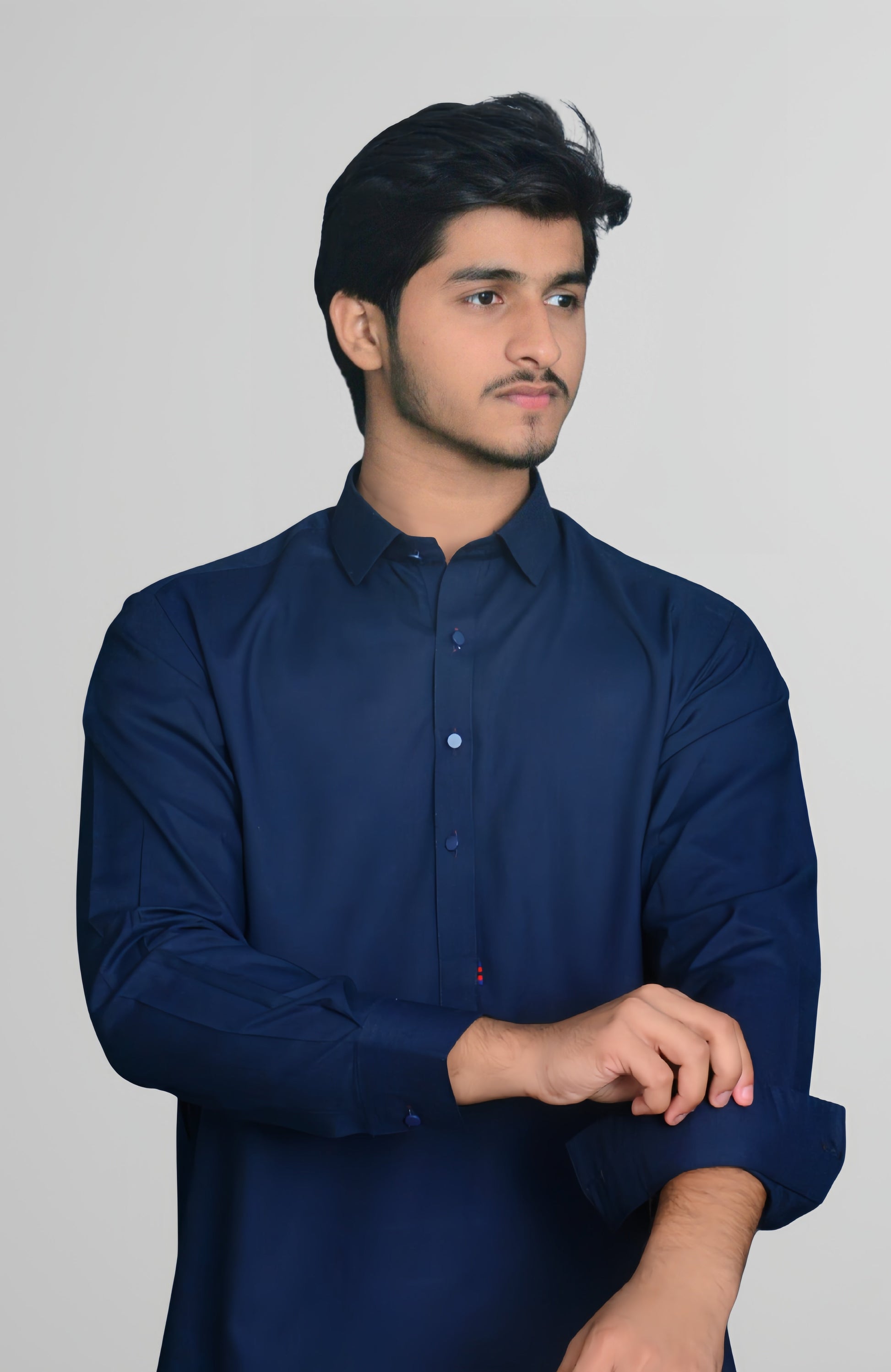 Feel the refined elegance of the French Collar Premium Navy Blue Shalwar Suit, designed for those who value classic style with a modern edge. Crafted from premium blended fabric, it offers unmatched comfort and a sophisticated appearance for any occasion.